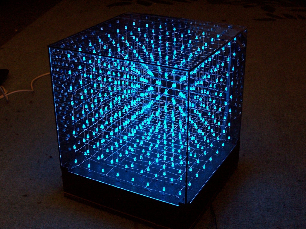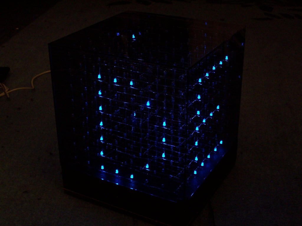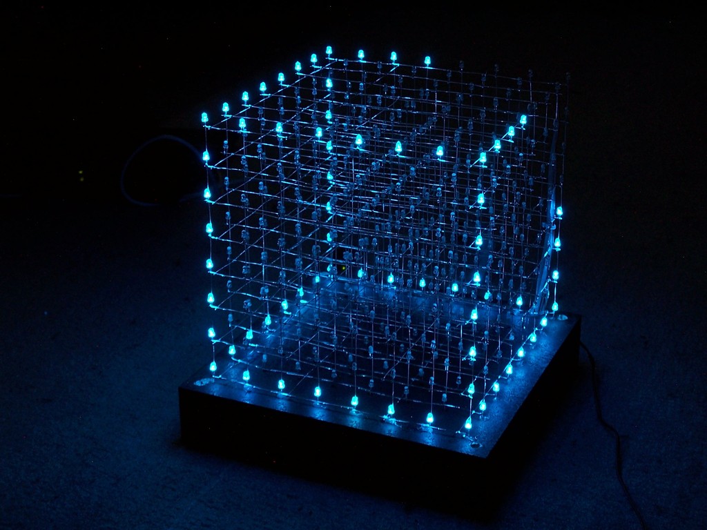 Another LED cube project, based on an ATMega32 controlling 512 blue 3mm LEDs
